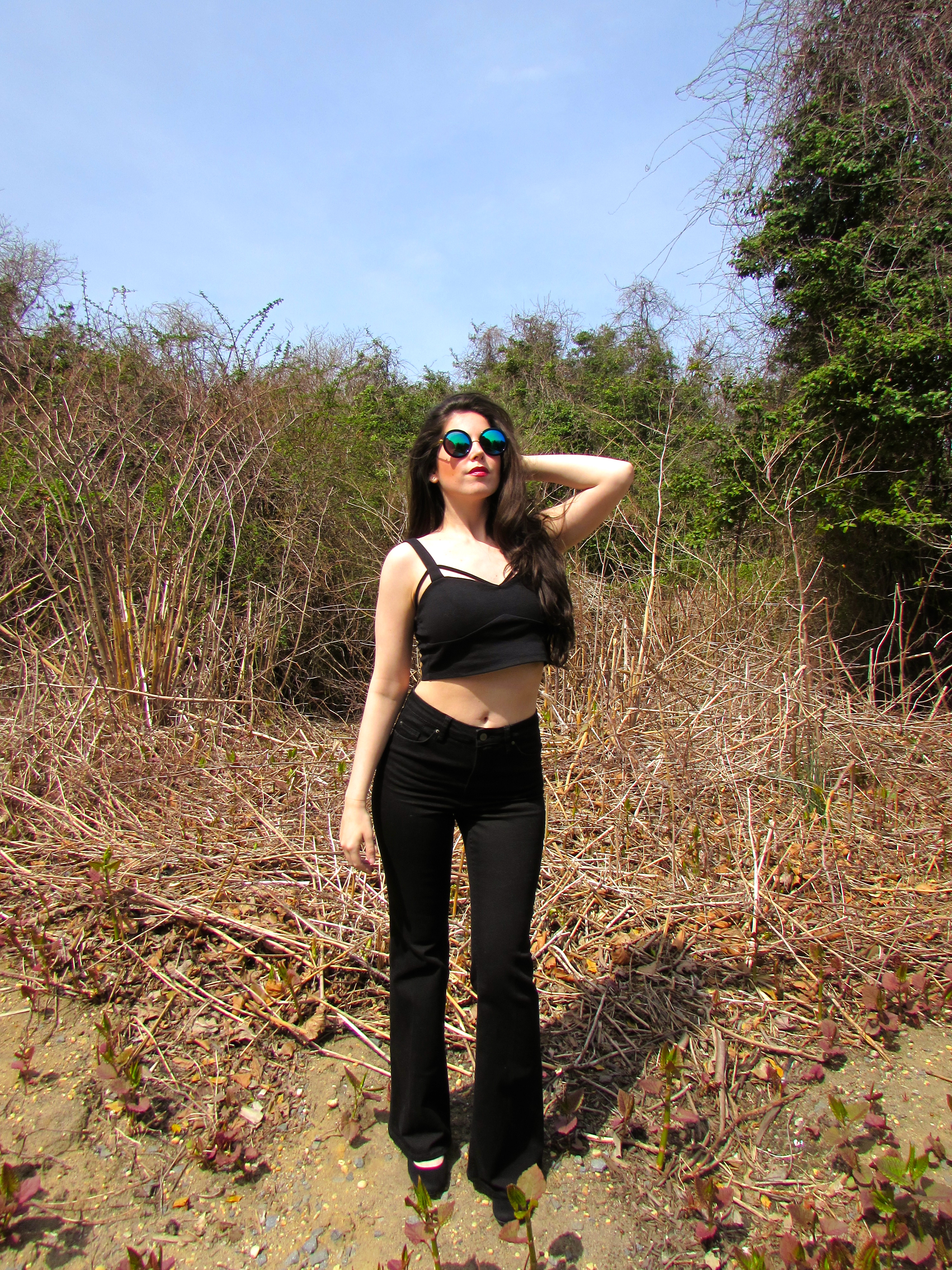 Wearing: Top (NastyGal, similar options below), Flares (H&M, similar), Shoes (ShoeDazzle), Jewels (Rocksbox), Lipstick (Charlotte Tilbury – ‘Love Bite’)