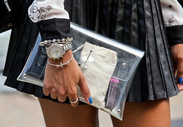 The plus side to this whole fiasco is clear clutches are actually on trend this season.
