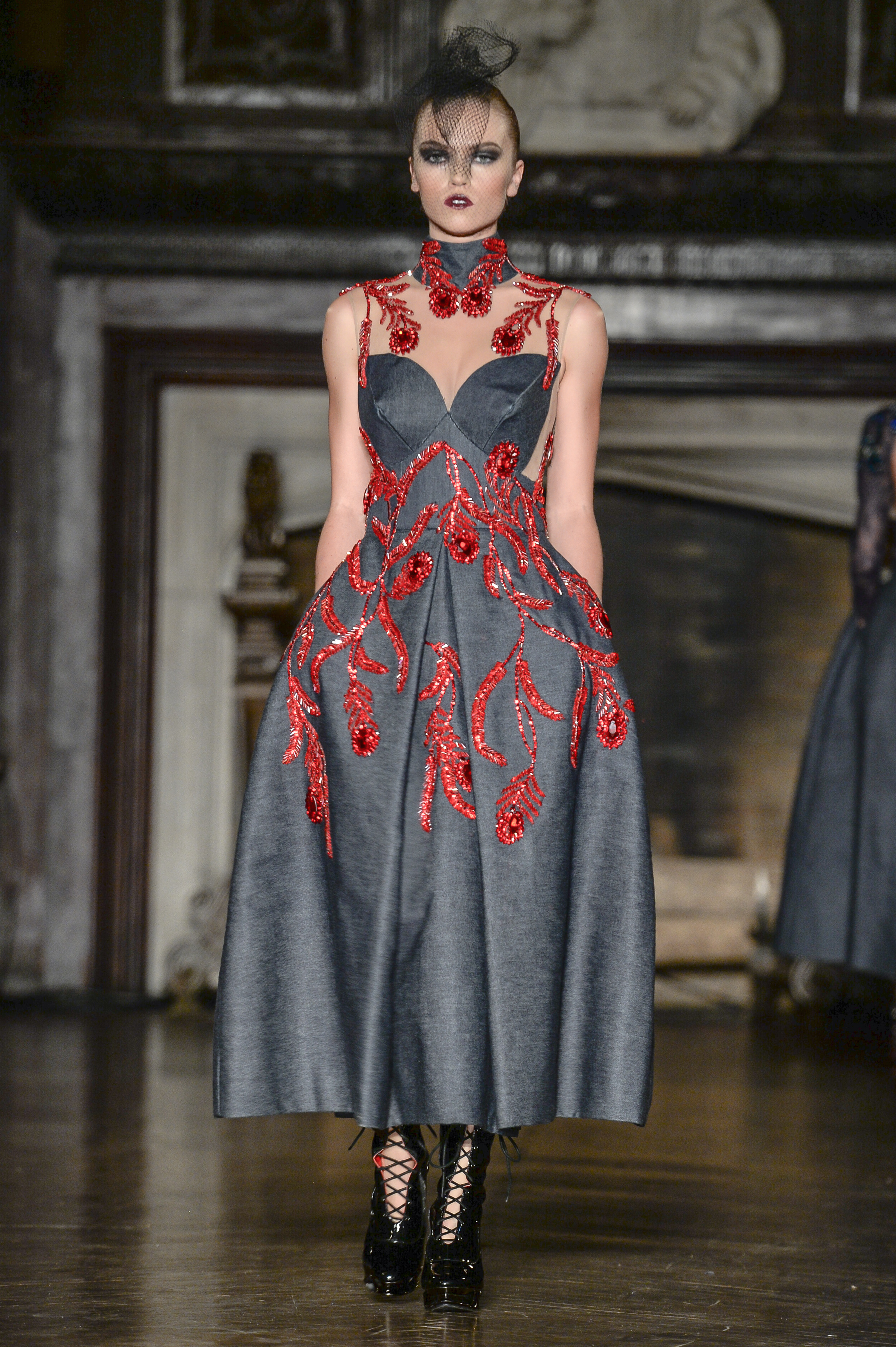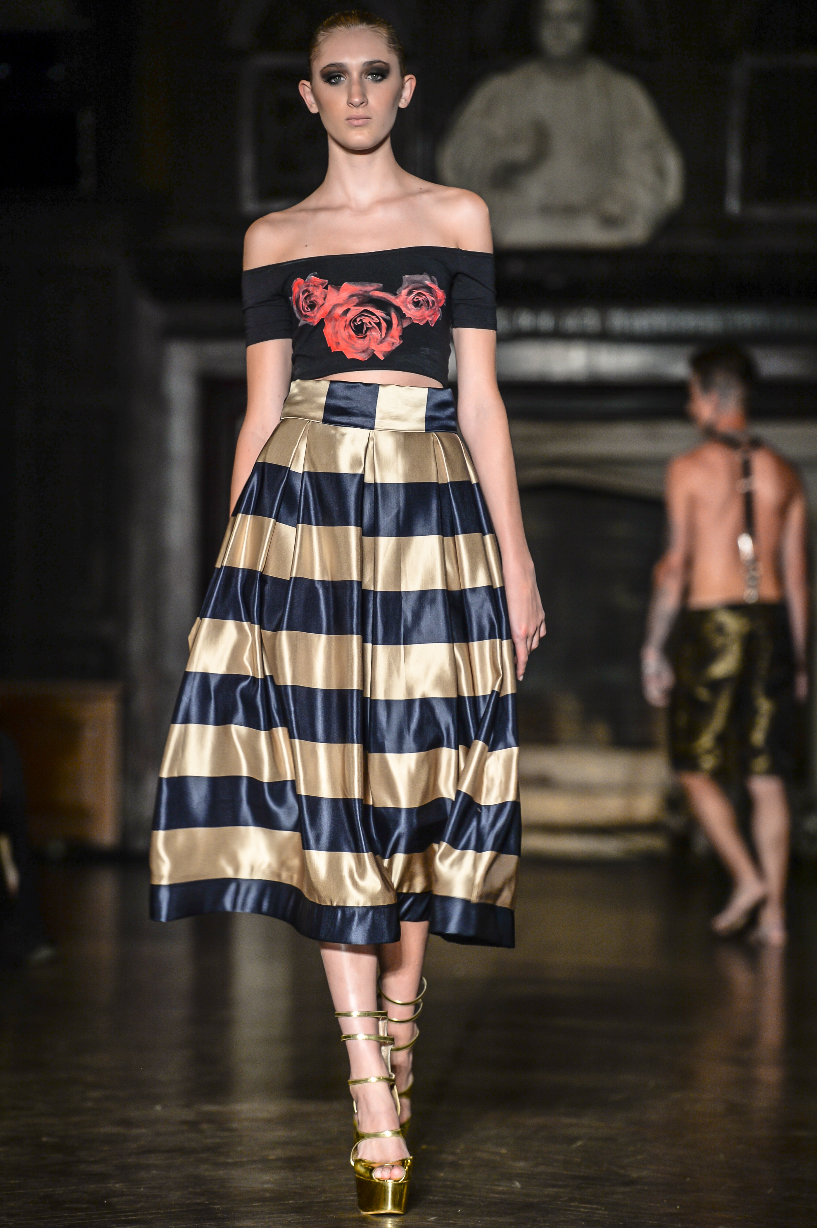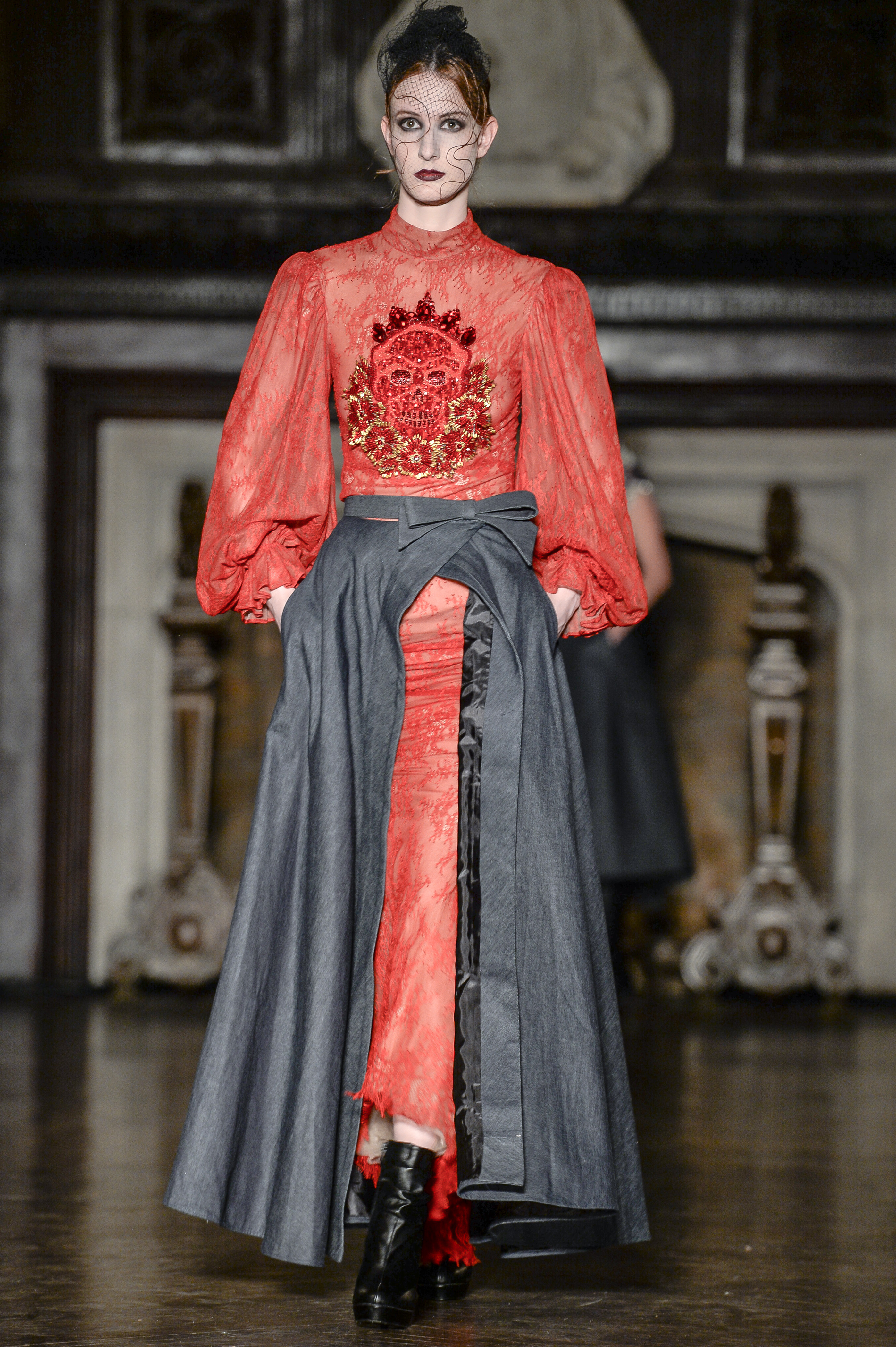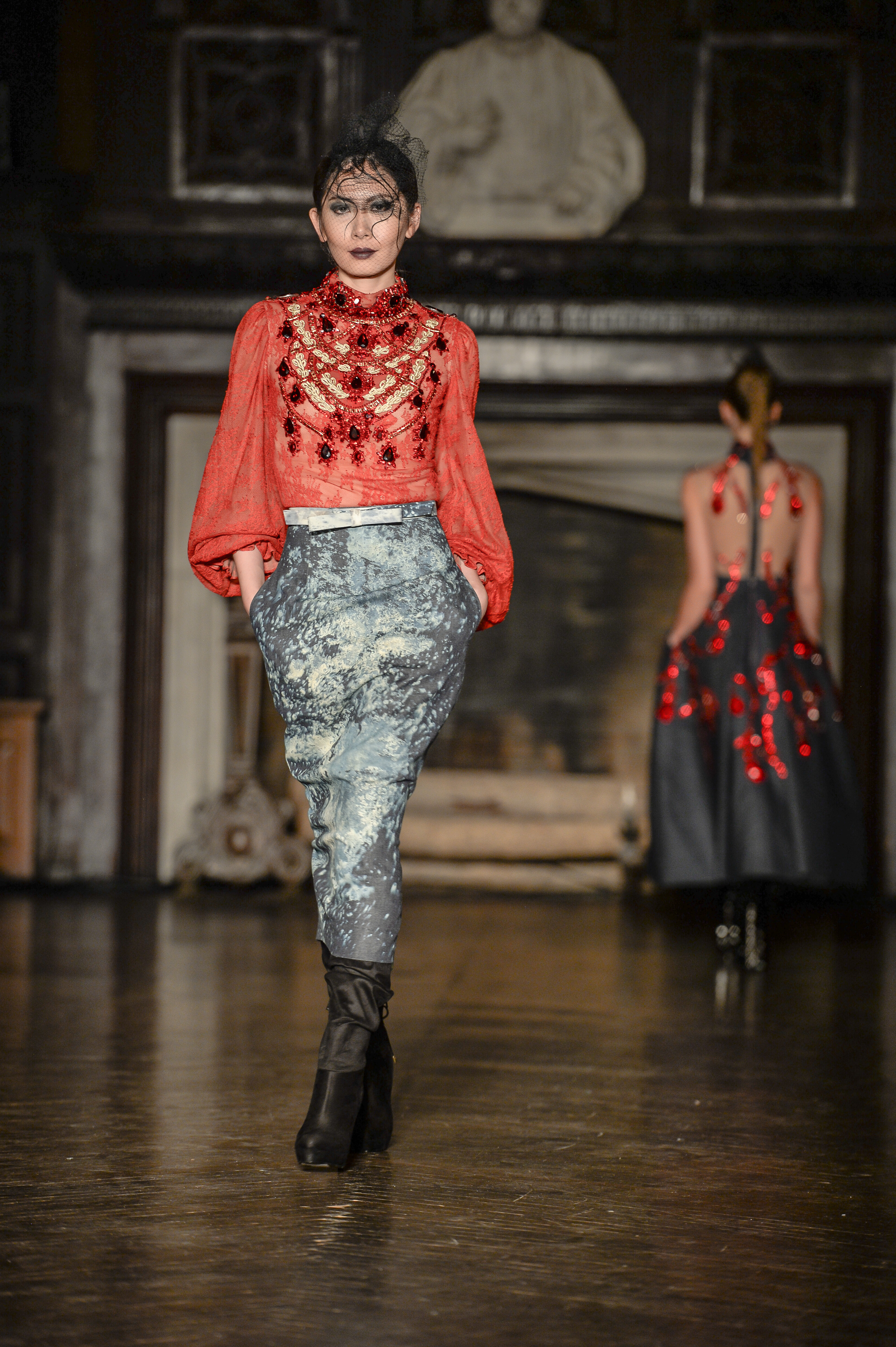 Amato Haute Couture by Furne One closed the show with the darkly romantic “Love is a Battlefield” collection. Magnificent dresses of deep hues emblazoned with intricate embellishment stormed the runway. French laces & tulle paired with stretch & acid washed denims for looks that were volumized and full of the designer’s mark of elegance and drama. Shoes by EMMETT Shoes and Hades Footwear made special appearances in the “Love is a Battlefield” collection by Amato Haute Couture and in the “One Rose” collection by Mister Triple X decadently accentuating the designer’s looks.