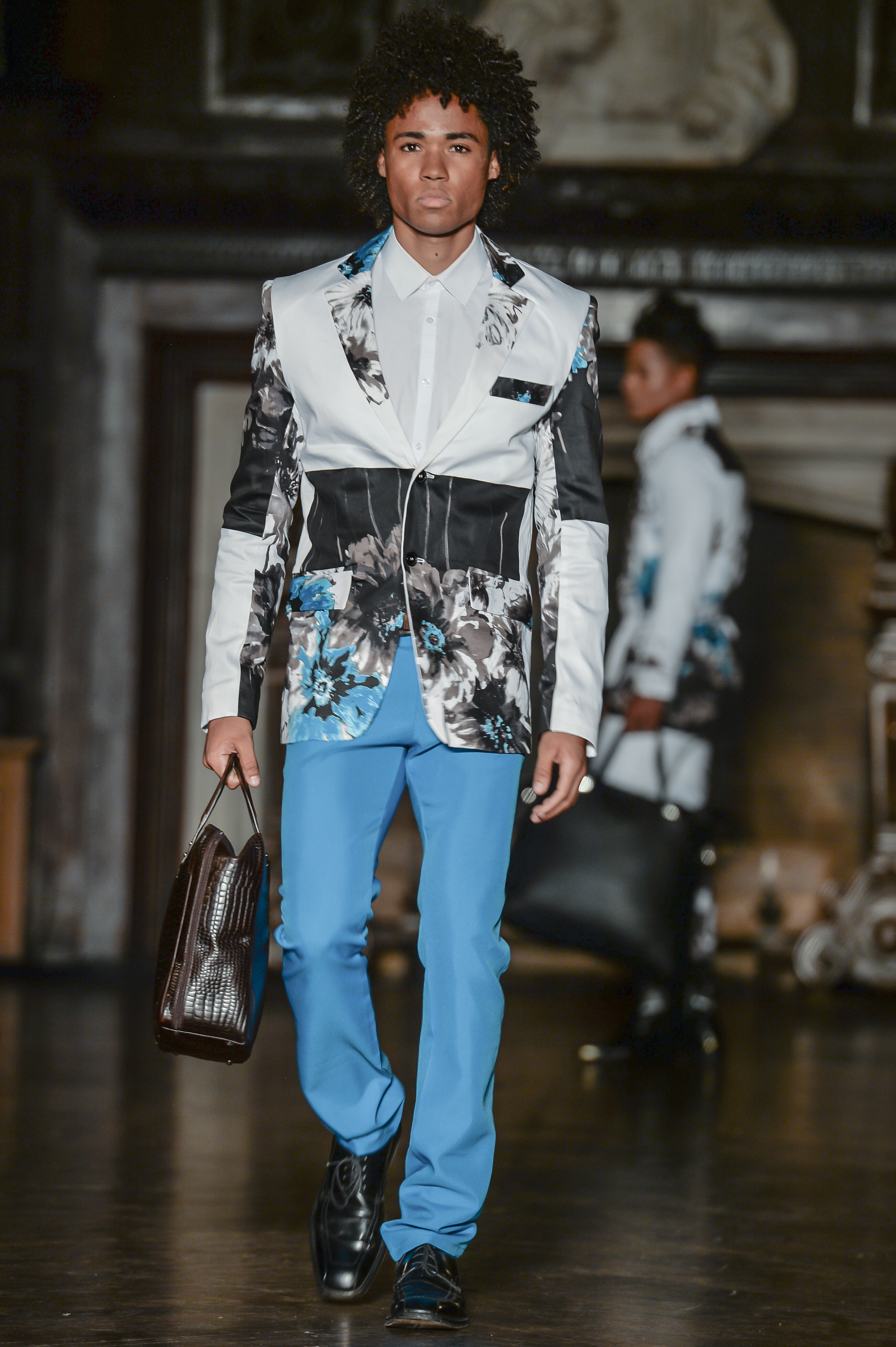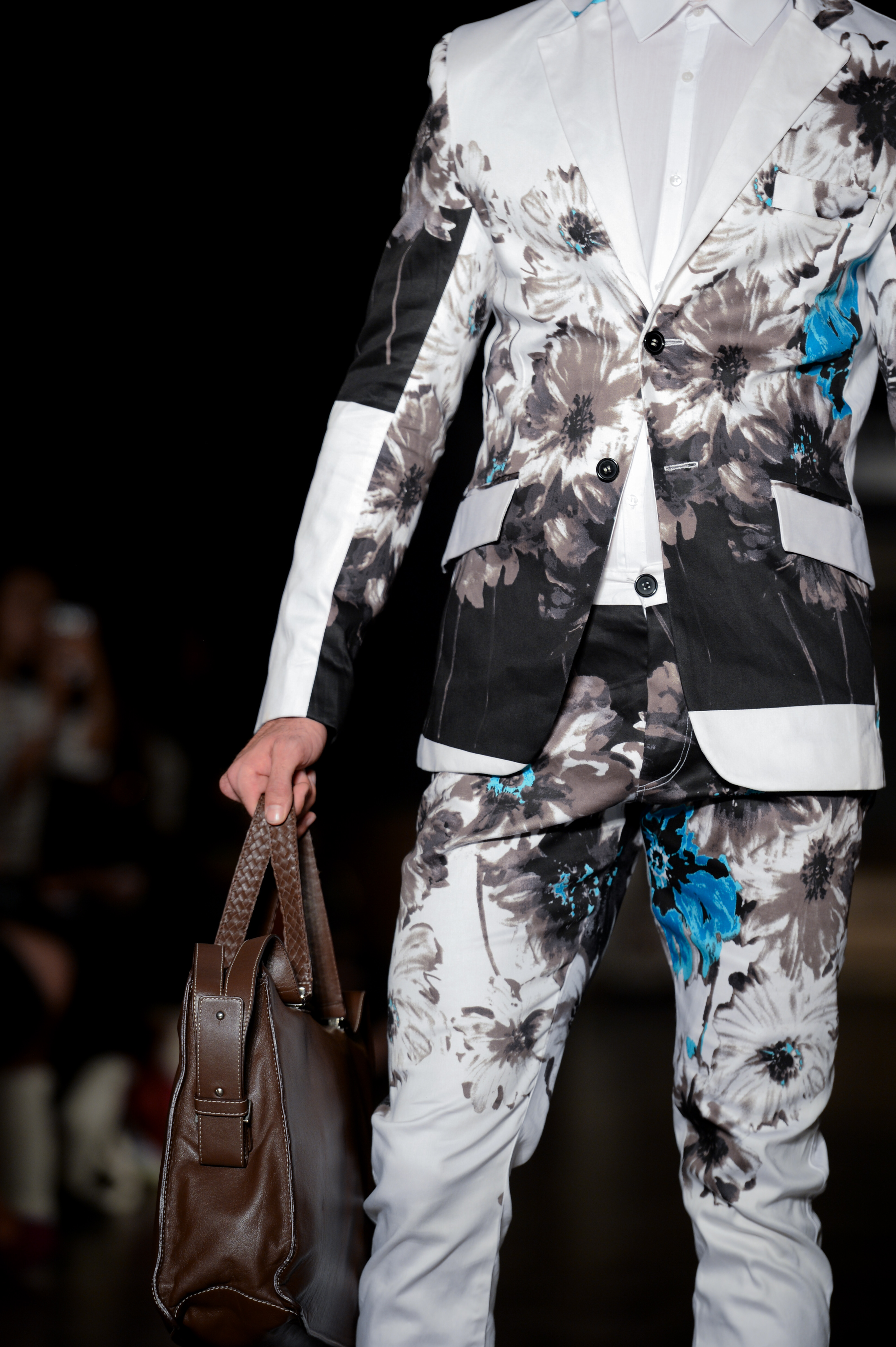 House of Byfield brought innovative floral splash patterns to menswear this season. Pops of black and teal accented the tailored menswear, while light flowing dresses came alive with purple floral patterns. Men and women’s leather bags by Carat23 brought trench coat looks to a whole new level.