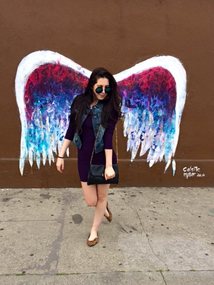 Wearing: Dress (Nasty Gal), Vest (Vintage, similar), Sunglasses (Boutique, similar), Flats (Express), Lipstick (NARS)