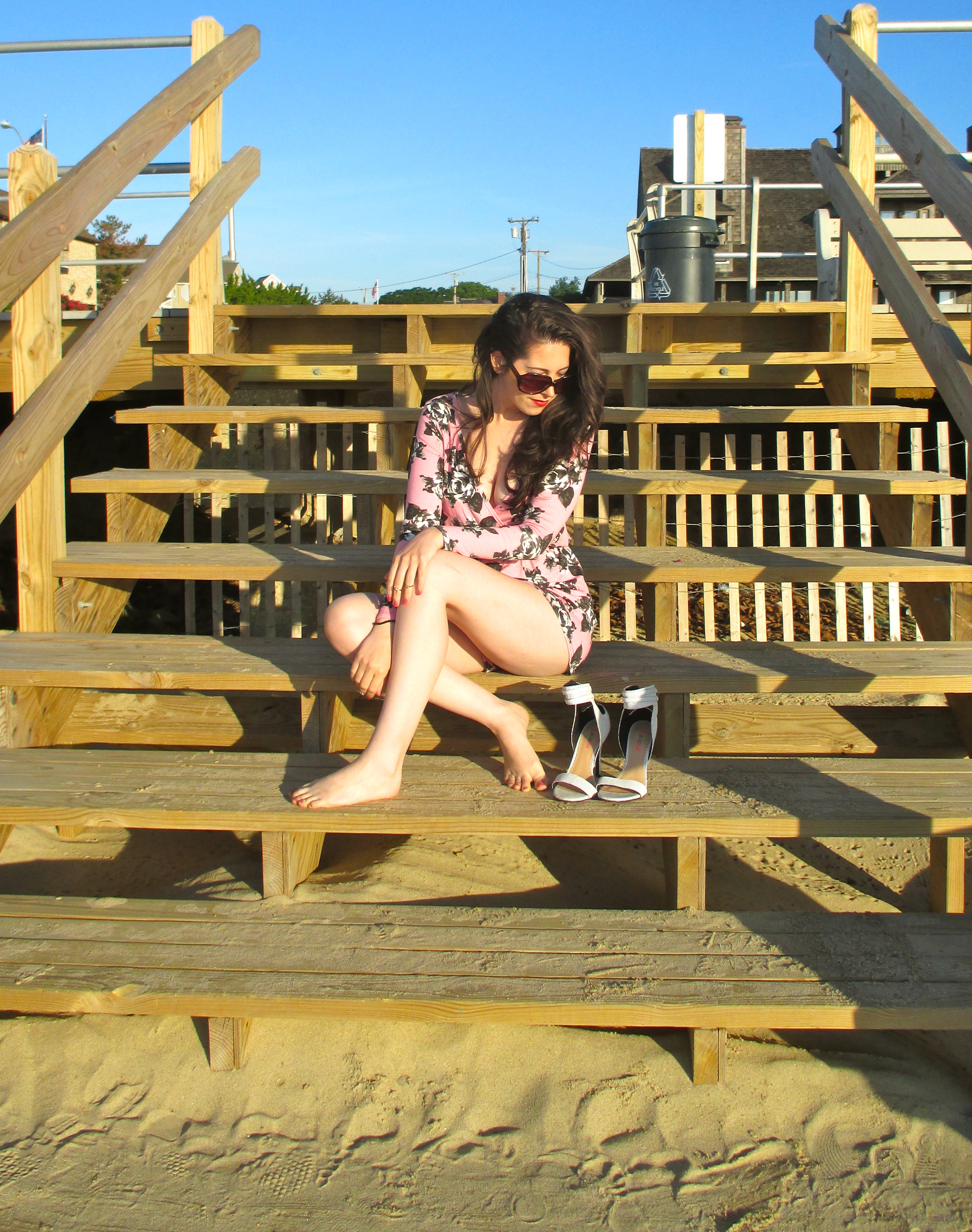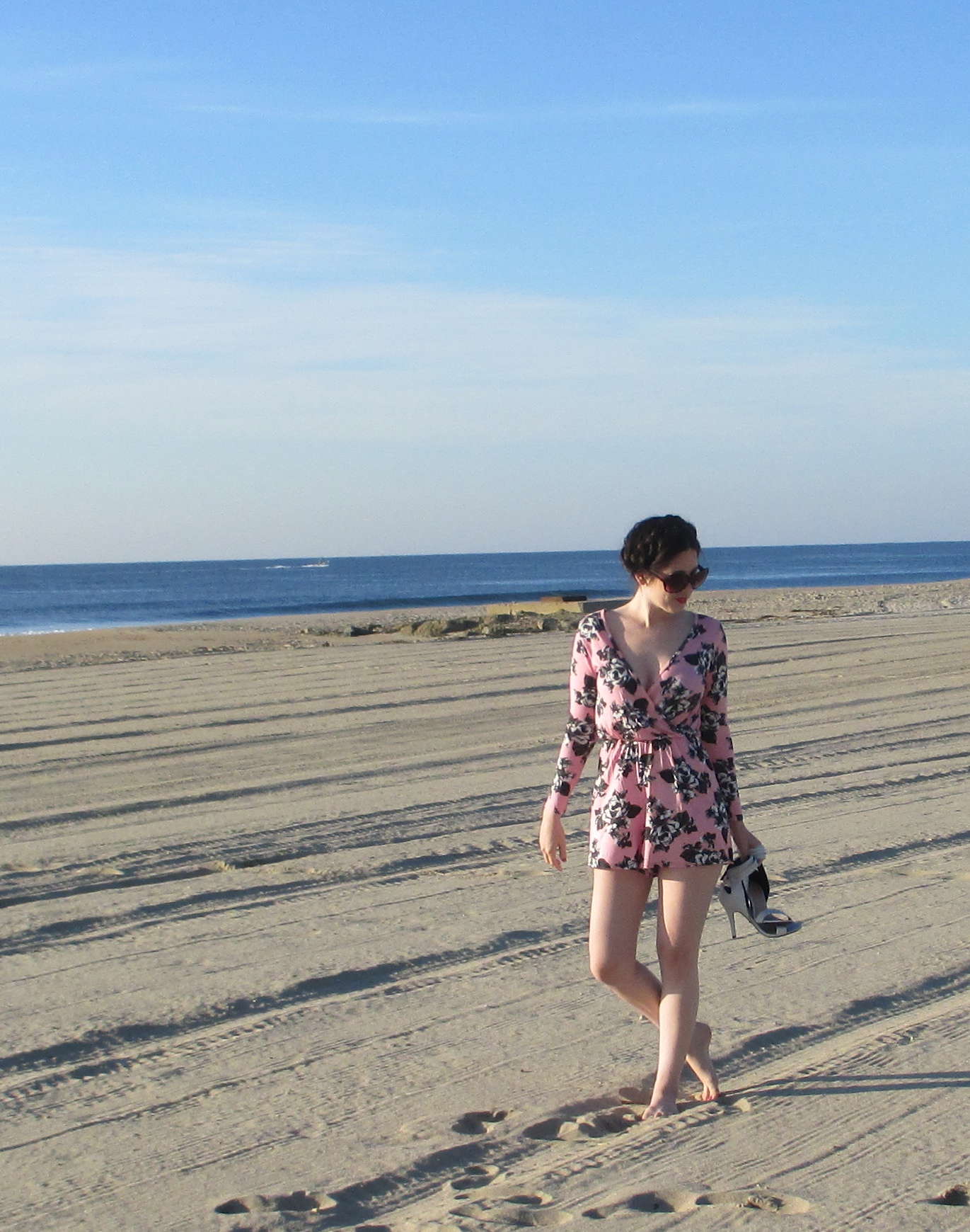 Wearing: Playsuit (boohoo), Heels (JustFab), Sunglasses (Steve Madden)