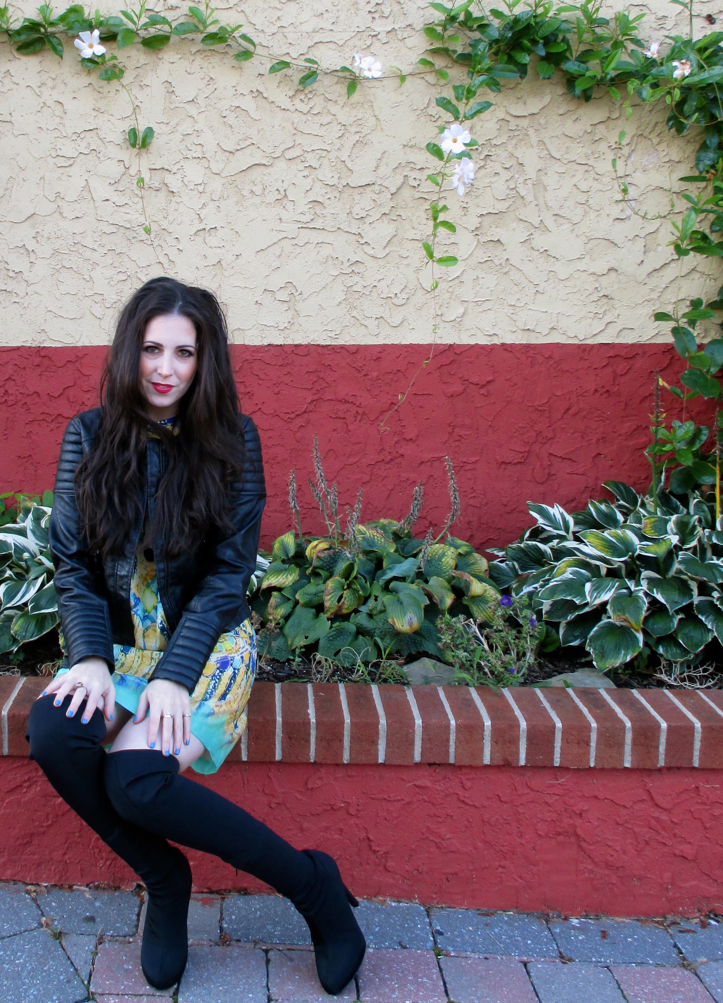 My sister was recently in Italy and got the most amazing handmade, custom fitted leather jacket – I’m seriously still drooling over it. Leather weather is here and pairing a great jacket (faux in my case) over a spring dress is a great way to keep fun pieces like this one in your rotation.